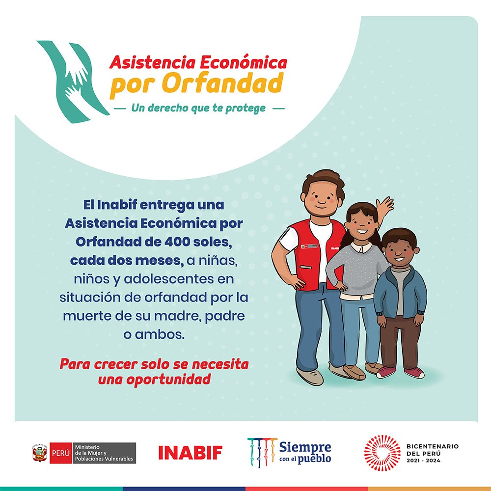 Según la LEY Nº 31405, que tiene como objetivo promover la protección y desarrollo integral de las niñas, niños y adolescentes que se encuentran en situación de orfandad, INABIF otorga un beneficio crucial para ayudar en estos momentos difíciles, a través de una subvención de S/. 400.00 (cuatrocientos soles) cada dos meses.
